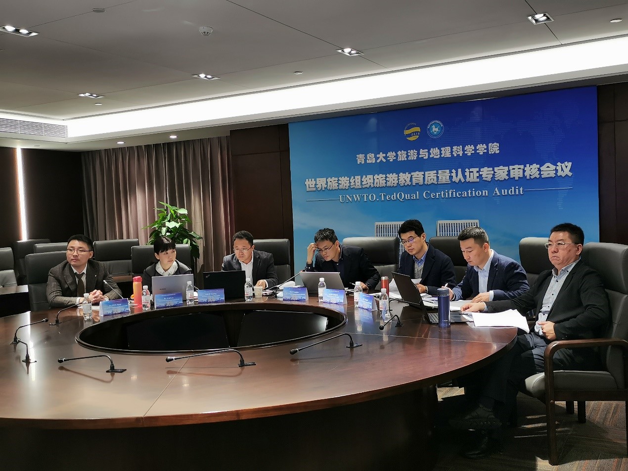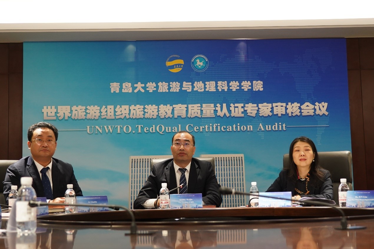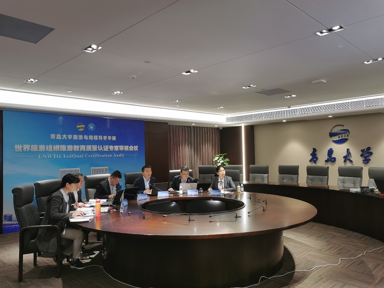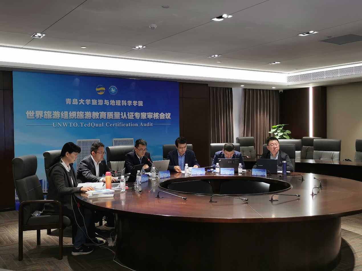 2021年11月5日上午,我院旅游管理专业和酒店管理专业联合国世界旅游组织教育质量认证审核工作反馈会在会议中心301召开。校党委常委、副校长孔伟金出席会议并致辞,学校教务处、财务处、学生处、人力资源处、国际交流合作处、资产与实验室管理处负责人、旅游与地理科学学院负责人、认证工作小组成员、教师代表等参加反馈会。联合国世界旅游组织旅游教育质量认证专家Dr.Reyes在墨西哥通过视频线上参加反馈会。