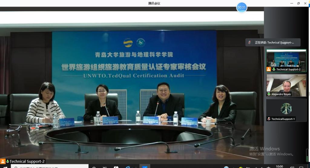 认证审核专家Dr.Reyes总结了6天与认证工作小组的报告与支撑材料论证,云游览校史馆、学生事务大厅、“非遗在青大”文化空间、青大印象休闲茶餐厅、旅游目的地管理实验室等办学设施,线上访谈学校职能部门、教师、学生、校友、公共部门和私营部门代表等审核情况。他认为,结合自评报告、支撑材料论证以及访谈情况,我校旅游管理专业和酒店管理专业的认证准备工作扎实、办学目标明确、办学特色鲜明、办学条件与设施优越、社会声誉和认可度较高,同时也指出了两个专业的不足,并提出了改进的建议。他表示,根据认证流程,接下来将尽快撰写形成一份审核报告提交联合国世界旅游组织旅游教育质量认证委员会审议,最终的认证结果大约在四至六个月后由认证委员会作出。