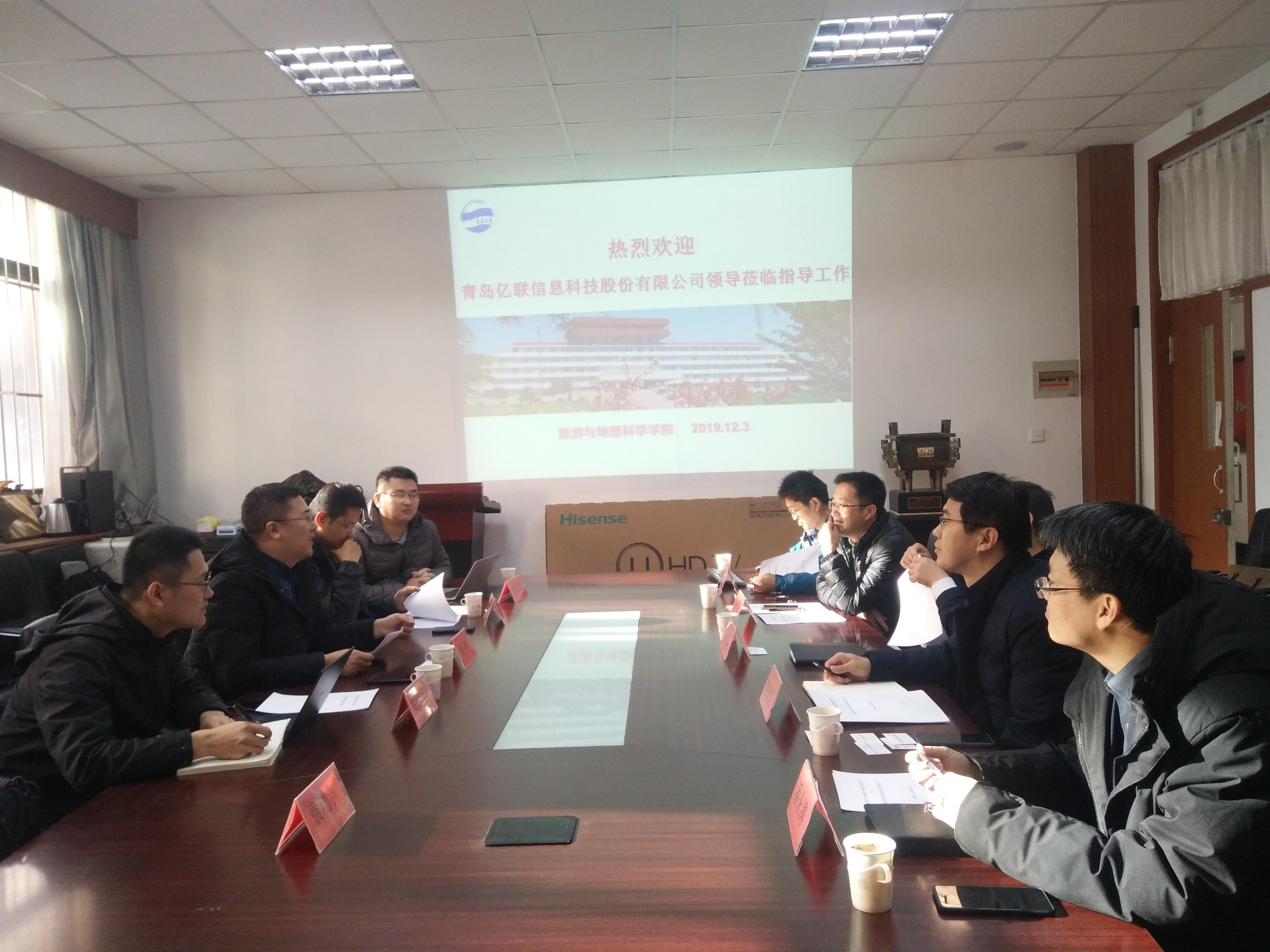 12月3日上午,青岛亿联信息科技股份有限公司总经理邱进一行4人到我院考察交流。院党委书记刘善东、副院长耿庆汇、院长助理、旅游与会展管理系主任赵玉宗、旅游与会展管理系潘永涛、钟行明博士参加座谈交流会。双方就发挥各自专业优势,围绕全域旅游、乡村振兴、海洋旅游、高星级酒店、城市规治理等领域开展校企合作,建立产教融合、协同育人的战略合作关系达成了广泛共识。