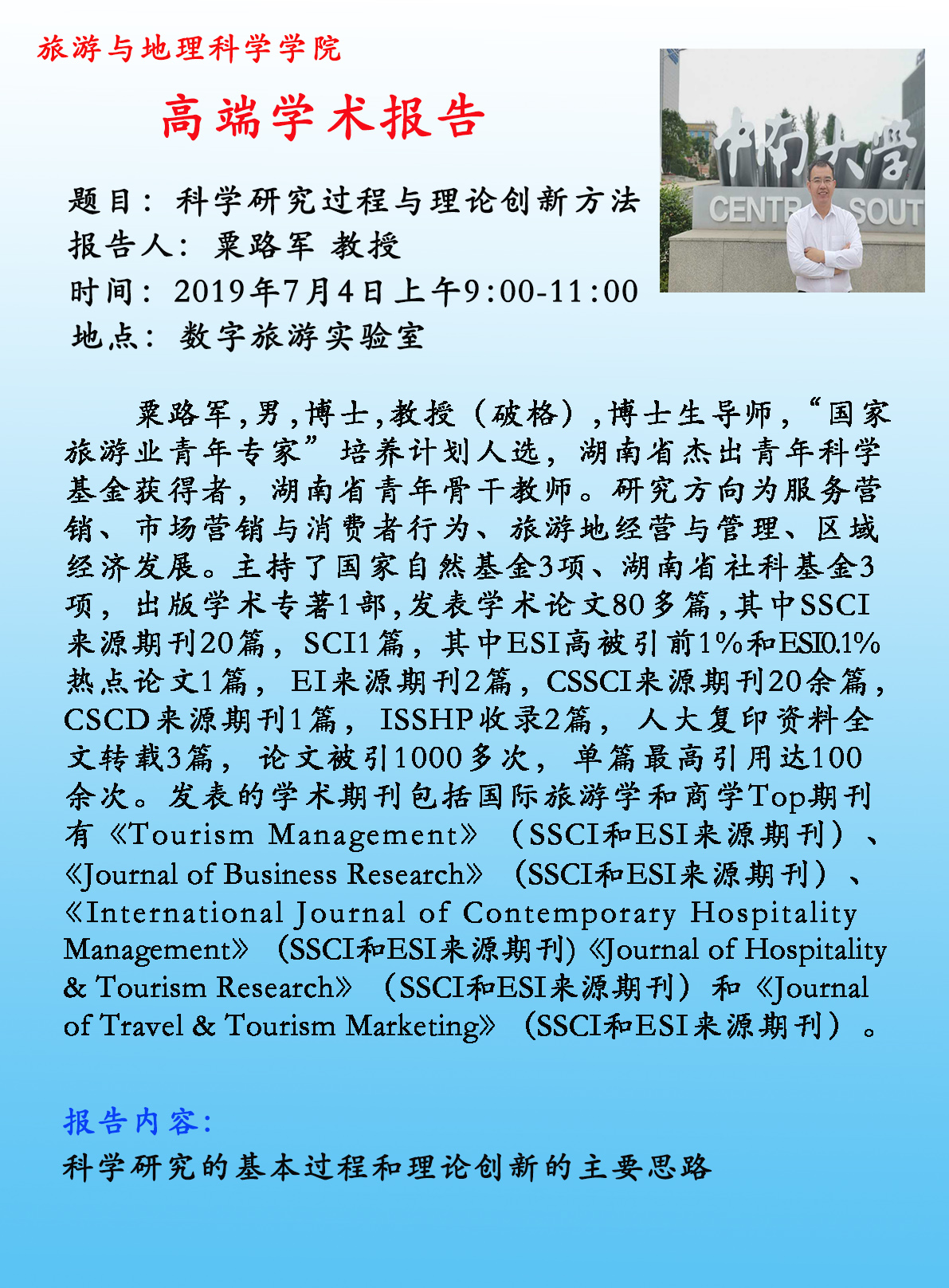 旅游与地理科学学院夏季学期高端学术讲座进行时