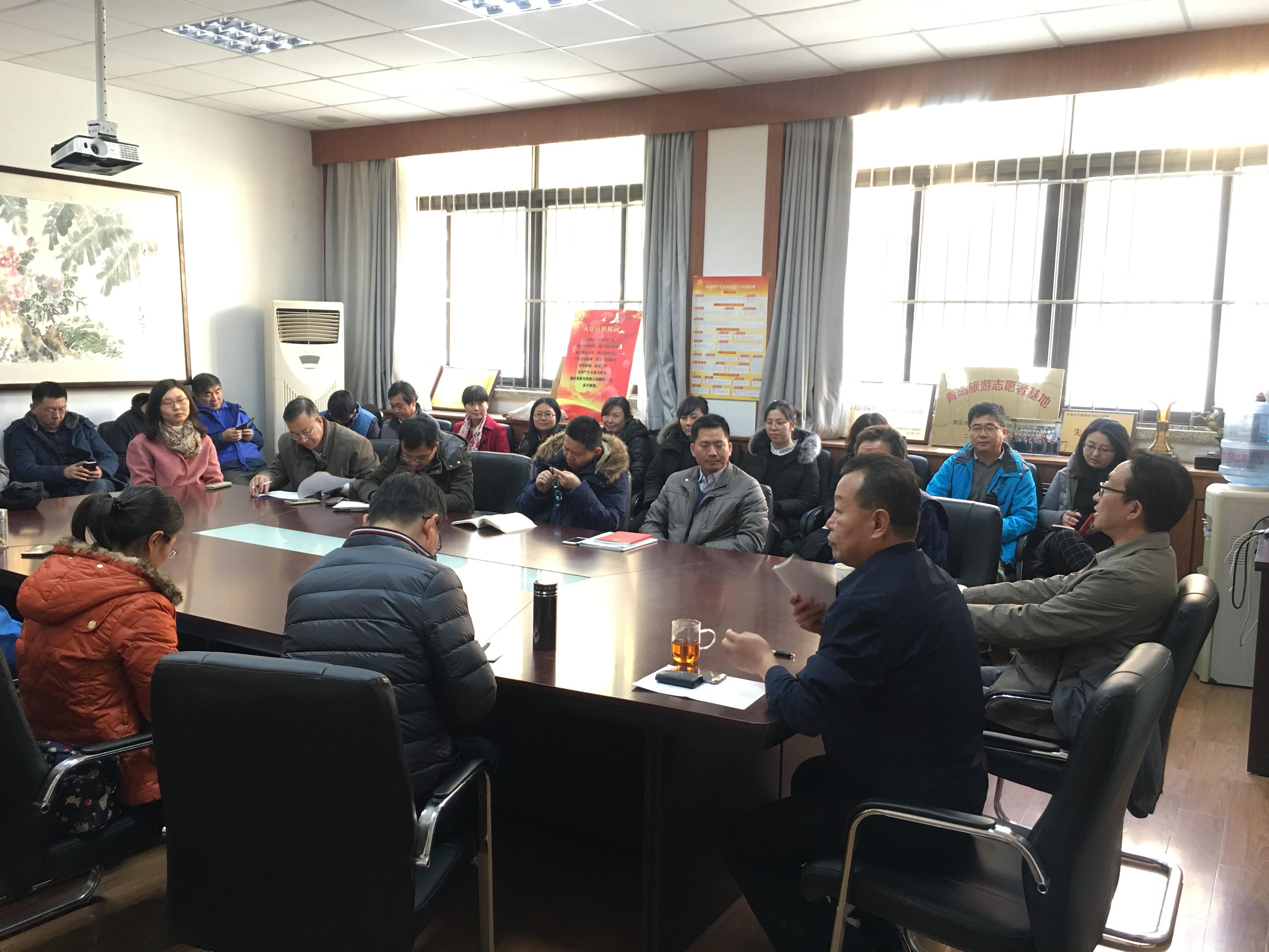 12月8日下午2时,旅游与地理科学学院学习贯彻党的十九大精神宣讲报告会在学院会议室举行,学院全体教师参加了报告会。学校党的十九大精神宣讲团成员、东校区管委会主任、书记于国权做了宣讲报告,刘善东书记主持会议。