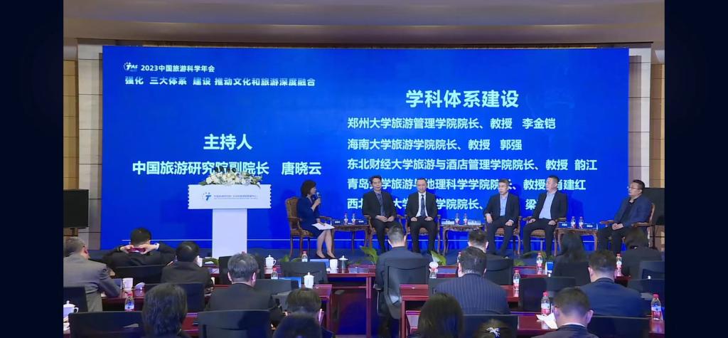 2023年4月22-23日,由中国旅游研究院主办、携程集团承办的2023中国旅游科学年会在北京召开。旅游与地理科学学院院长肖建红教授受邀参会,并在学科体系建设研讨环节做专题对话。肖建红院长介绍了万象城awc体育旅游学科的发展历史以及我院立足山东区域文旅产业前沿,发挥万象城awc体育学科专业门类齐全优势,推进现代文旅产业学院、实施学科交叉人才培养模式的探索与实践。