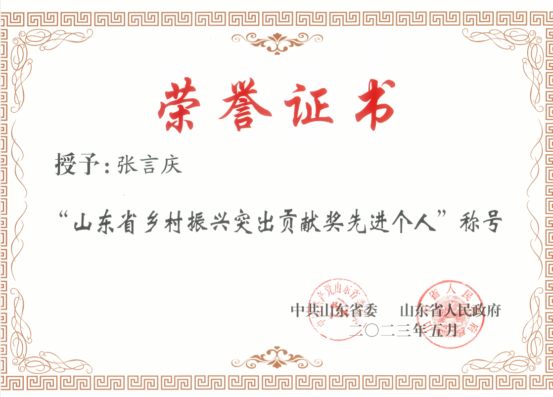 近日,省委、省政府召开全省乡村振兴齐鲁样板现场推进会,全面总结和安排部署我省全面推进乡村振兴和加快建设农业强省工作。省委书记林武出席会议并讲话,省政协主席葛慧君出席,省委副书记、青岛市委书记陆治原主持,省人大常委会副主任、党组书记杨东奇出席。会上,省委常委、省政府常务副省长曾赞荣宣读了省委、省政府《关于表彰山东省乡村振兴突出贡献奖先进集体和先进个人的通报》,授予100个集体“山东省乡村振兴突出贡献奖先进集体”称号,授予199名同志“山东省乡村振兴突出贡献奖先进个人”称号。我院张言庆副院长被授予“山东省乡村振兴突出贡献奖先进个人”称号。