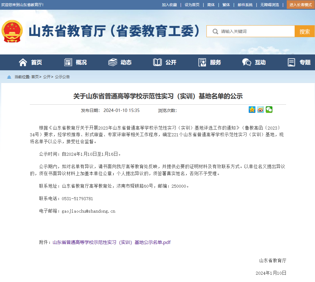 我院获批山东省普通高等学校示范性实习(实训)基地