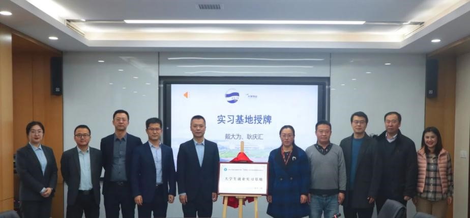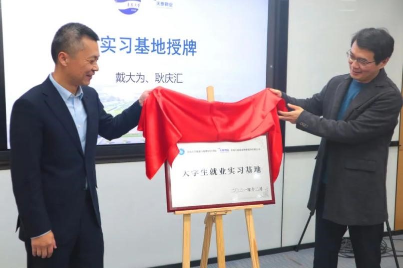 仪式的第二个环节,天泰集团董事长戴大为、学院副院长耿庆汇一同为“大学生就业实习基地”揭牌。基地的设立必将进一步促进学校文旅资源与企业产业优势的结合,搭建起校企合作共赢的平台,对学院人才培养具有重要意义。随后,戴大为表示,他期待有更多机会与学院开展深层次的合作,祝愿万象城awc体育越办越好。