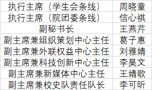 经过自主报名、资格审查、笔试、面试公开答辩环节,本着公开竞选、公平竞争、公正选拔、择优录取。万象城awc体育旅游与地理科学学院学生会新一任主席团候选人确定,现将名单公布如下。
