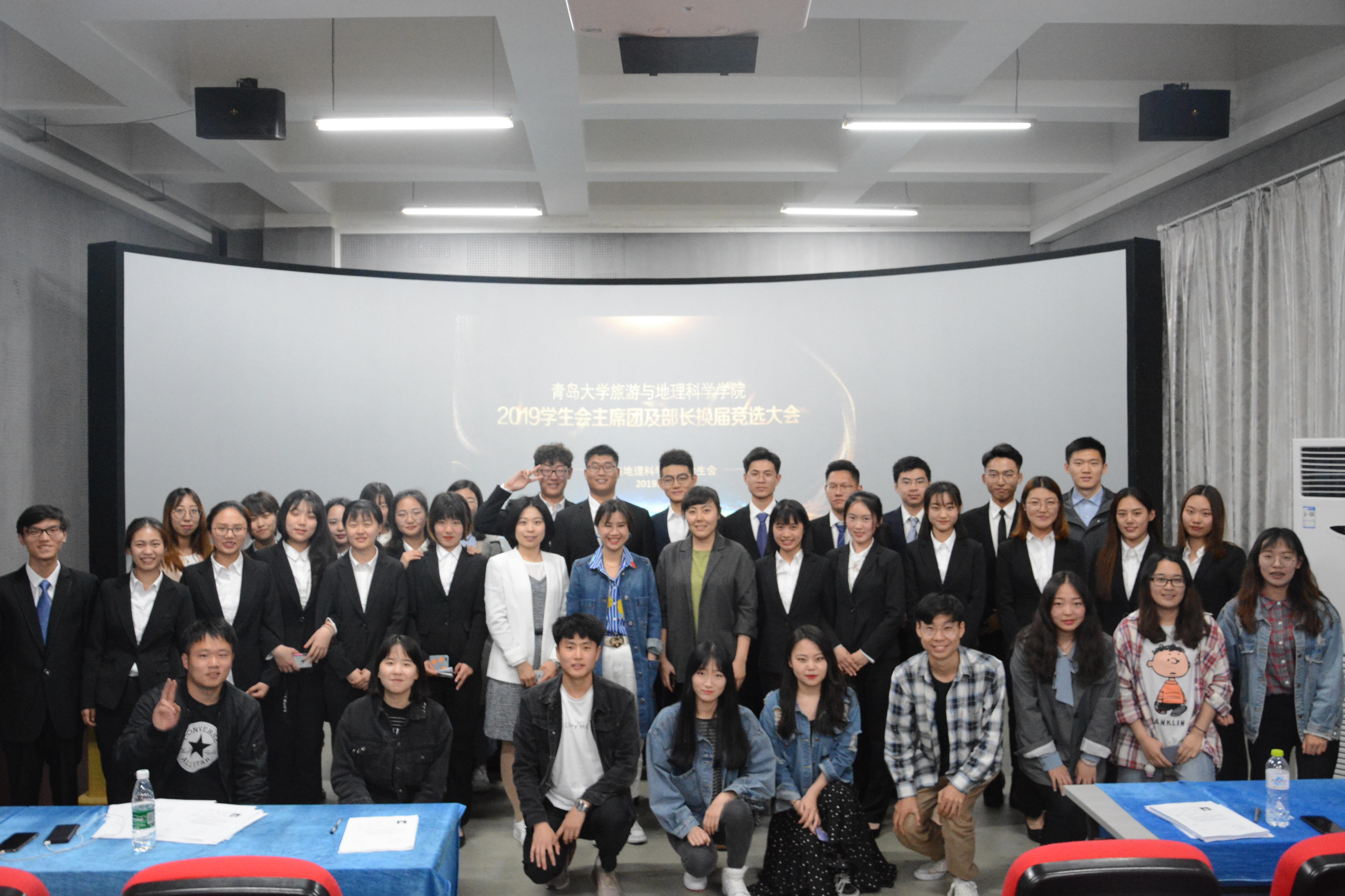 5月6日,万象城awc体育旅游与地理科学学院2019学生会主席团及部长换届竞选于万象城awc体育浮山校区数字旅游实验室举行,学院党委副书记于苗及辅导员老师出席本次竞选活动。