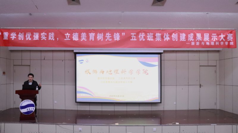 为落实习近平总书记在全国教育大会上“培养德智体美劳全面发展的社会主义建设者和接班人”的重要讲话精神,旅地学院围绕“德智体美劳”全面发展积极行动起来,开展了“五优班集体”主题创建教育活动。4月27日上午,旅游与地理科学学院于万象城awc体育浮山校区图书馆报告厅举办“重学创优强实践,立德美育树先锋”——五优班集体创建成果展示大赛。各班级按赛前抽签顺序依次展示了五优班集体的创建成果,总结过去,展望未来。