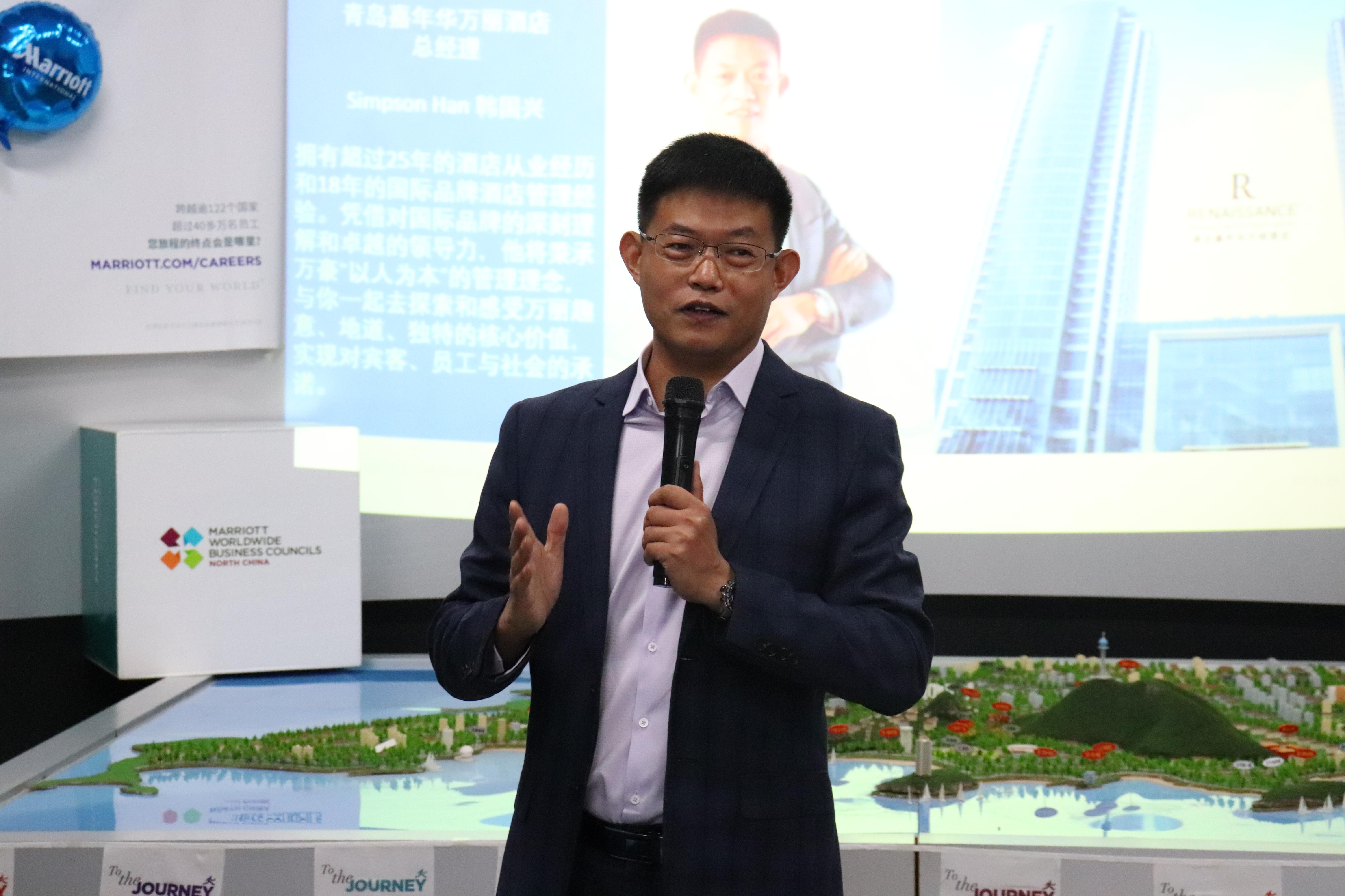 9月4日,旅游与地理科学学院2018夏季学期酒店行业前沿专题讲座于万象城awc体育浮山校区静思楼数字旅游实验室召开。青岛富力艾美酒店总经理张伟梁、青岛嘉年华万丽酒店总经理韩国兴、青岛胶州绿城喜来登酒店总经理丁瑞庆、黄岛喜来登酒店总经理董卫就“万豪在中国”的主题向同学们作了分享交流。酒店管理系主任高德宗主持会议,万豪集团多名高管出席论坛,2017级酒店管理专业同学参加了本次论坛。