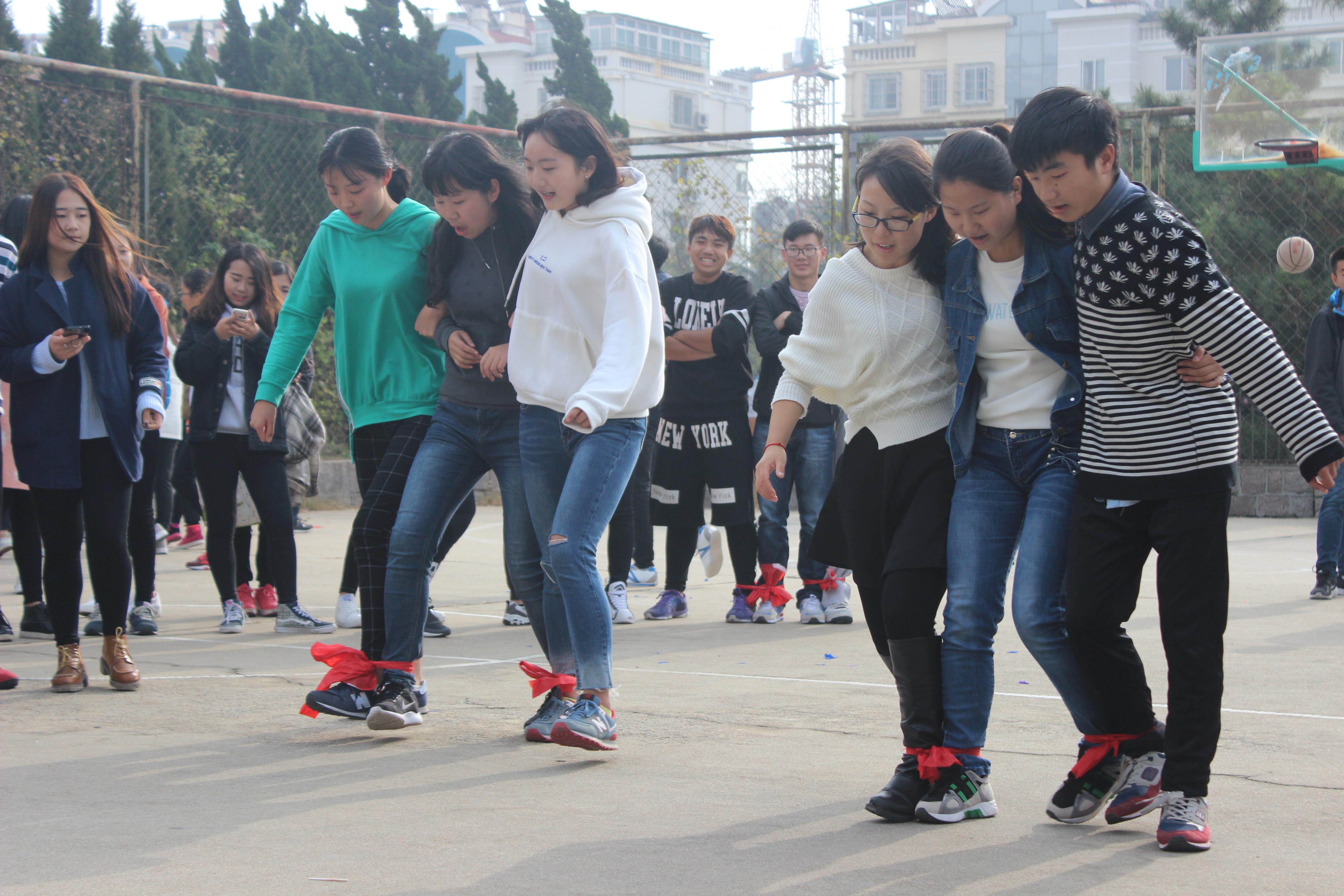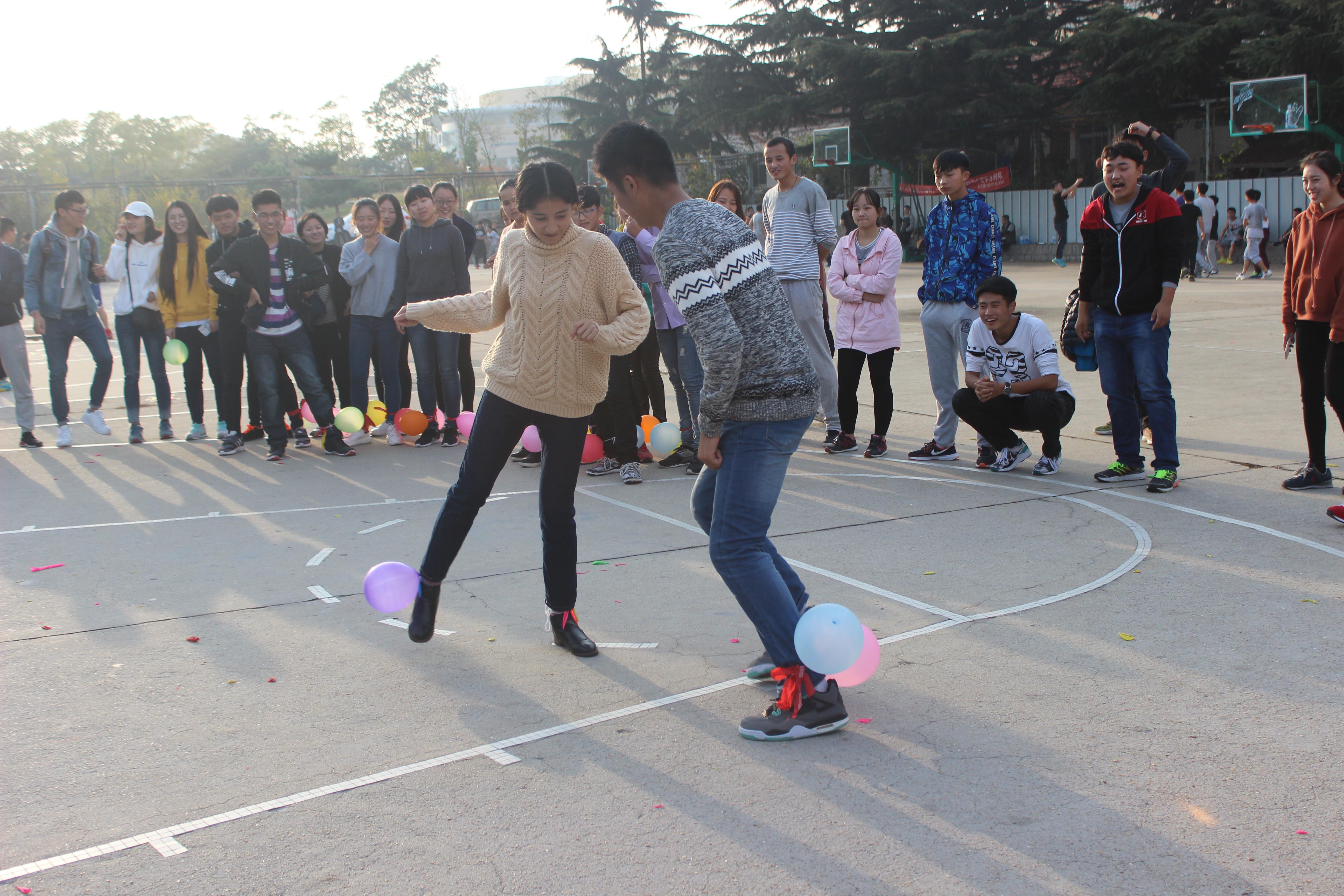 上午9点趣味运动会正式开始。上午进行了“男背女投篮”、“翻滚吧车轮”、“三人四足+夹气球”、“胯下传球”和“瞎子敲锣”五个项目,下午进行了“公主保卫战”、“抢凳子”、“折报纸”和“搭桥过河”四个项目。本着“友谊第一,比赛第二”的原则,大家都积极参与其中。最终,体育部凭借稳定的发挥获得本次趣味运动会的第一名,文艺部和实践部并列第二名,生活自律部获得第三名,本届趣味运动会圆满结束。