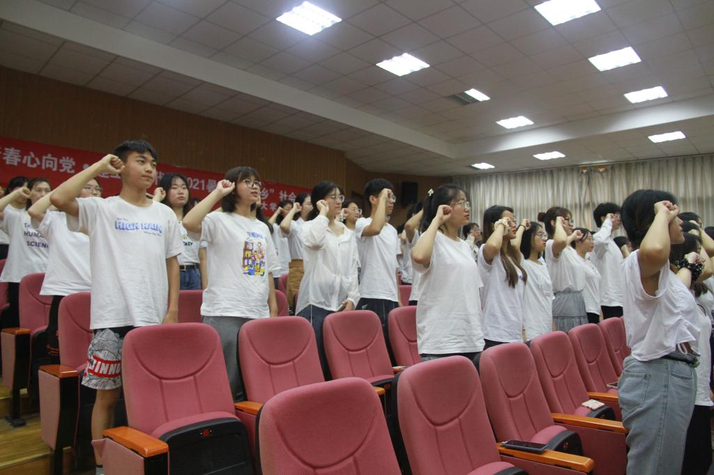 仪式上,往届优秀团队队员进行经验分享。随后,指导教师代表潘永涛从专业角度对“三下乡”暑期社会实践活动进行解读。其后,耿庆汇、赵玉宗、于苗为各支队伍代表成员授旗,旗帜在手,相信志愿者们定不负使命在肩!然后,由学生代表带领即将奔赴各实践地开展暑期社会实践的志愿者们进行宣誓。