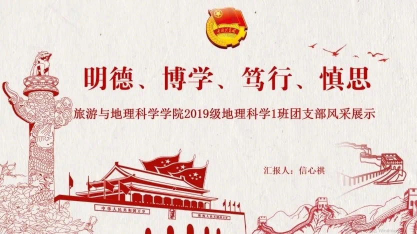 为积极响应校团委号召,以习近平新时代中国特色社会主义思想为指导,深入学习贯彻党的十九大以及全国教育大会精神,认真贯彻落实学校第三次党代会、第二次团代会精神,不断增强基层团组织的吸引力、凝聚力和战斗力,激发基层团支部的工作活力,旅游与地理科学学院团委举办“凝聚青年力量奋图强,争创魅力支部展风采”团支部建设成果展示大赛。2018级,2019级全体团支部参加了比赛。