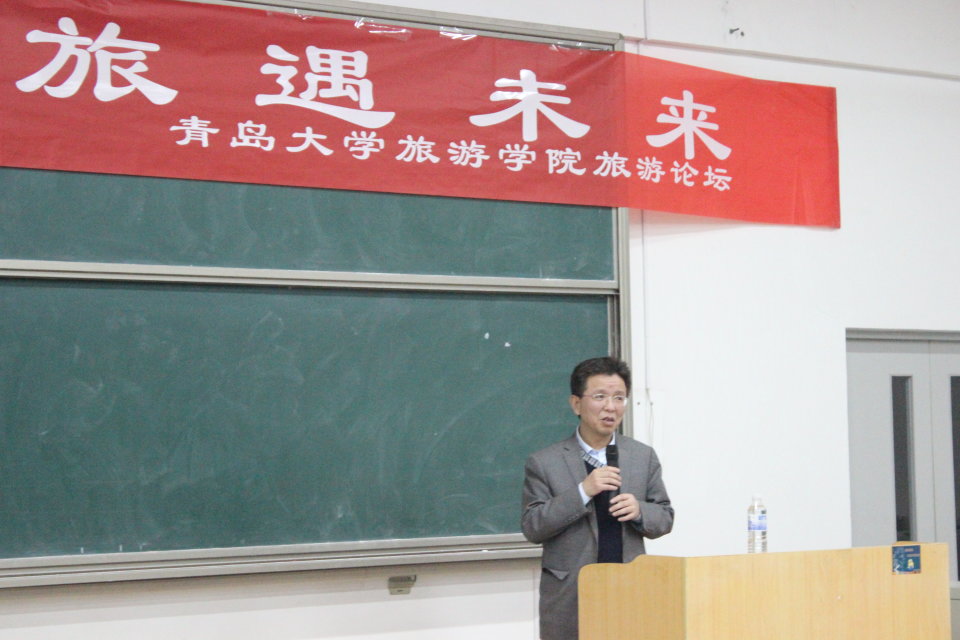 12月12日晚,由万象城awc体育旅游学院团委主办的以“邂逅青岛,旅遇未来”为主题的2015级第一期旅游论坛在东校区1号教学楼311教室举办。主讲人为旅游学院院长马波。