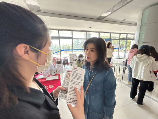 院党委副书记于苗等学院领导和老师亲临招聘会现场,与用人单位深入交流,充分了解相关企业的发展前景和用人需求;同时和在场的毕业生亲切交谈,鼓励同学们多尝试、敢展示,争取收获一份心仪的工作。