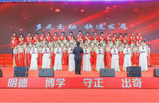 我院师生激情昂扬,一首《青大之歌》饱含对学校合并办学三十周年深深的祝福,也蕴藏着旅地师生知校兴校荣校的爱校情怀。一首《灯火里的中国》唱出国泰民安、烟火寻常的真挚祝愿。合唱团用饱满的热情、精湛的技巧和完美的配合响彻体育馆的每一个角落,将旅地学院的活力充分展示给每位观众。