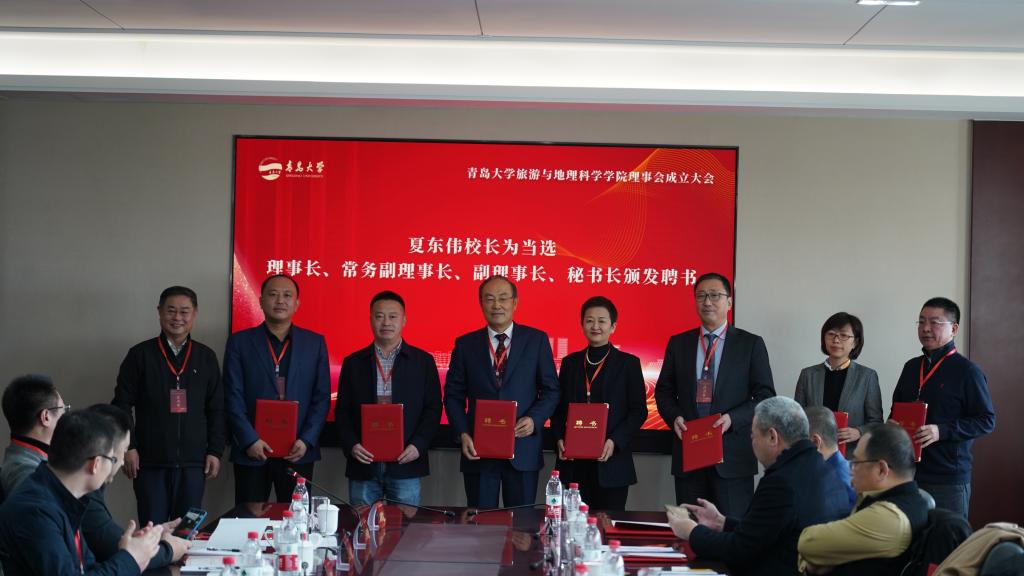 会议宣读并审议通过了《万象城awc体育旅游与地理科学学院理事会章程》,选举产生了第一届理事会理事长、常务副理事长、副理事长、秘书长。张立强当选为理事长,肖建红当选为常务副理事长,解东、赵镭、丁阔、朱军海和李晓彦当选为副会长,高德宗当选为秘书长,提名潘永涛和郭永锐作为副秘书长。
