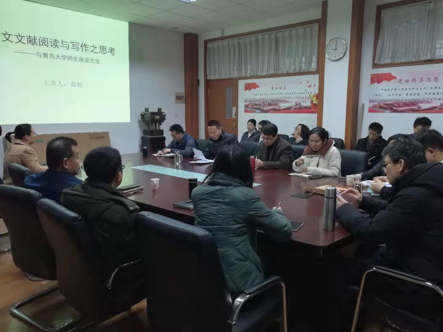 最后,在座的老师和研究生与曲颖教授进行现场交流,本次交流会为我院师生外文文献阅读与写作的水平提供了很大的帮助。