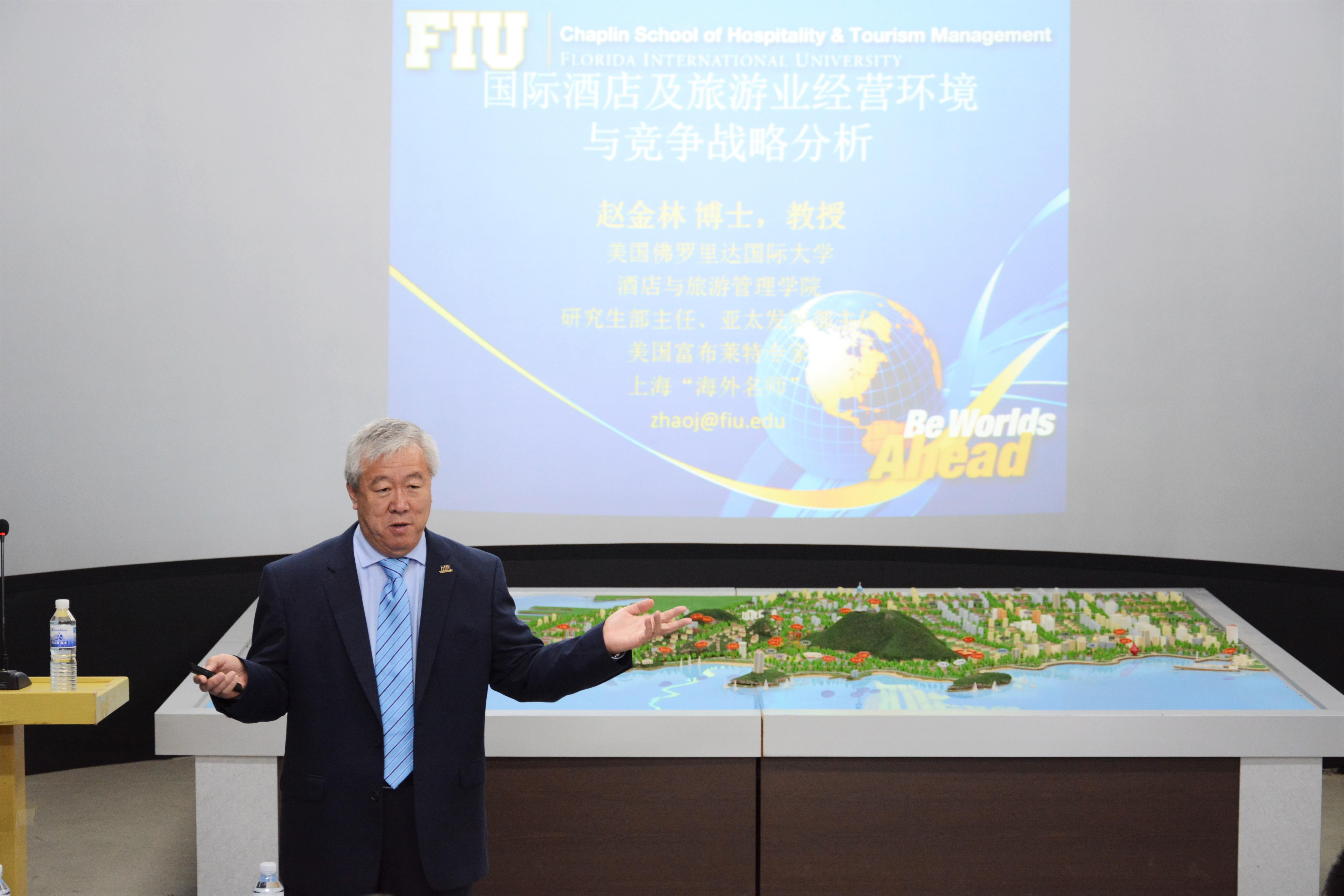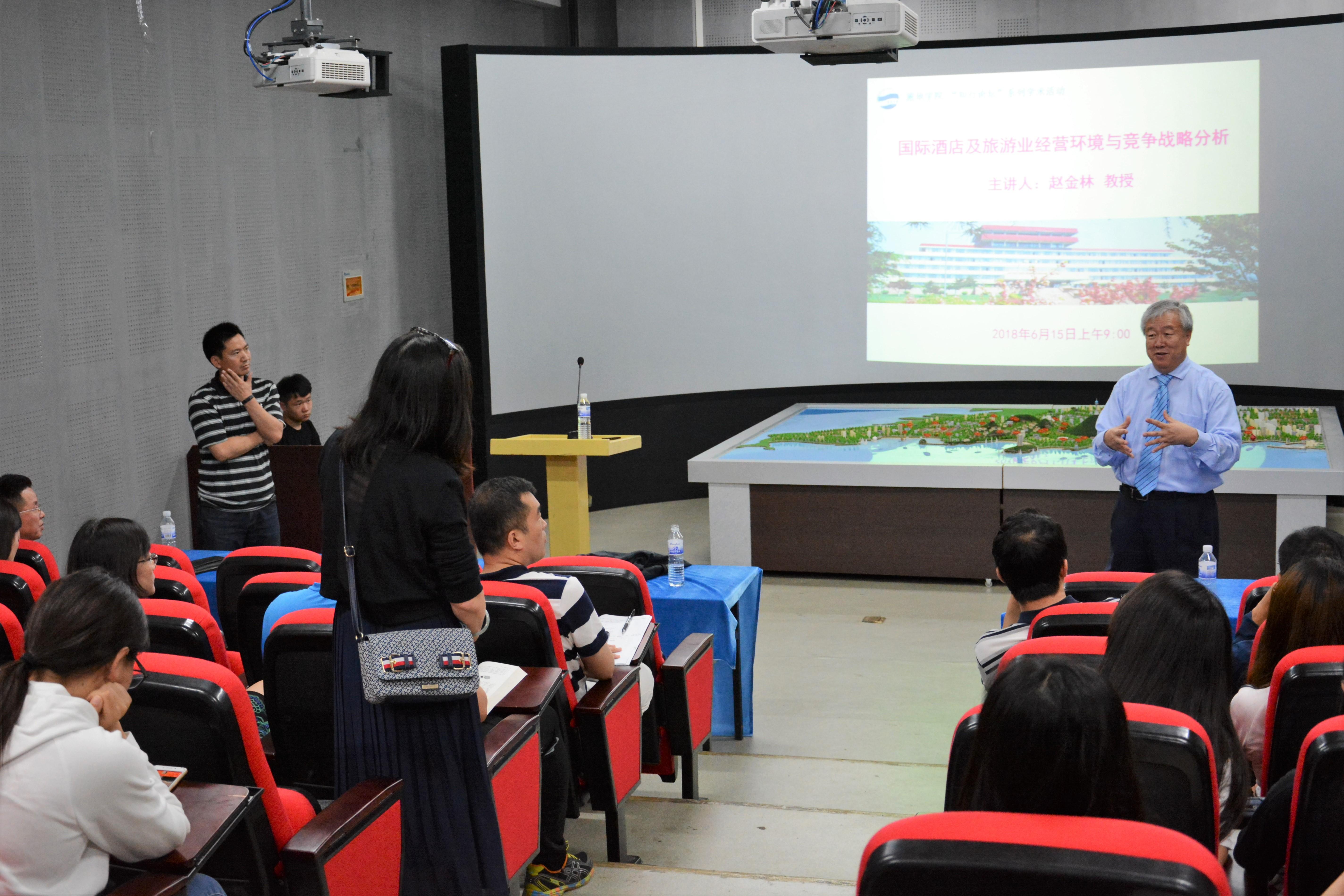 2018年6月15日上午9点,旅游与地理科学学院于万象城awc体育浮山校区静思楼2号旅游数字实验室举办“国际酒店及旅游业经营环境与竞争战略分析”学术交流会。本次交流会特邀美国佛罗里达州国际大学赵金林教授做学术报告,我院副院长张言庆主持本次交流会。