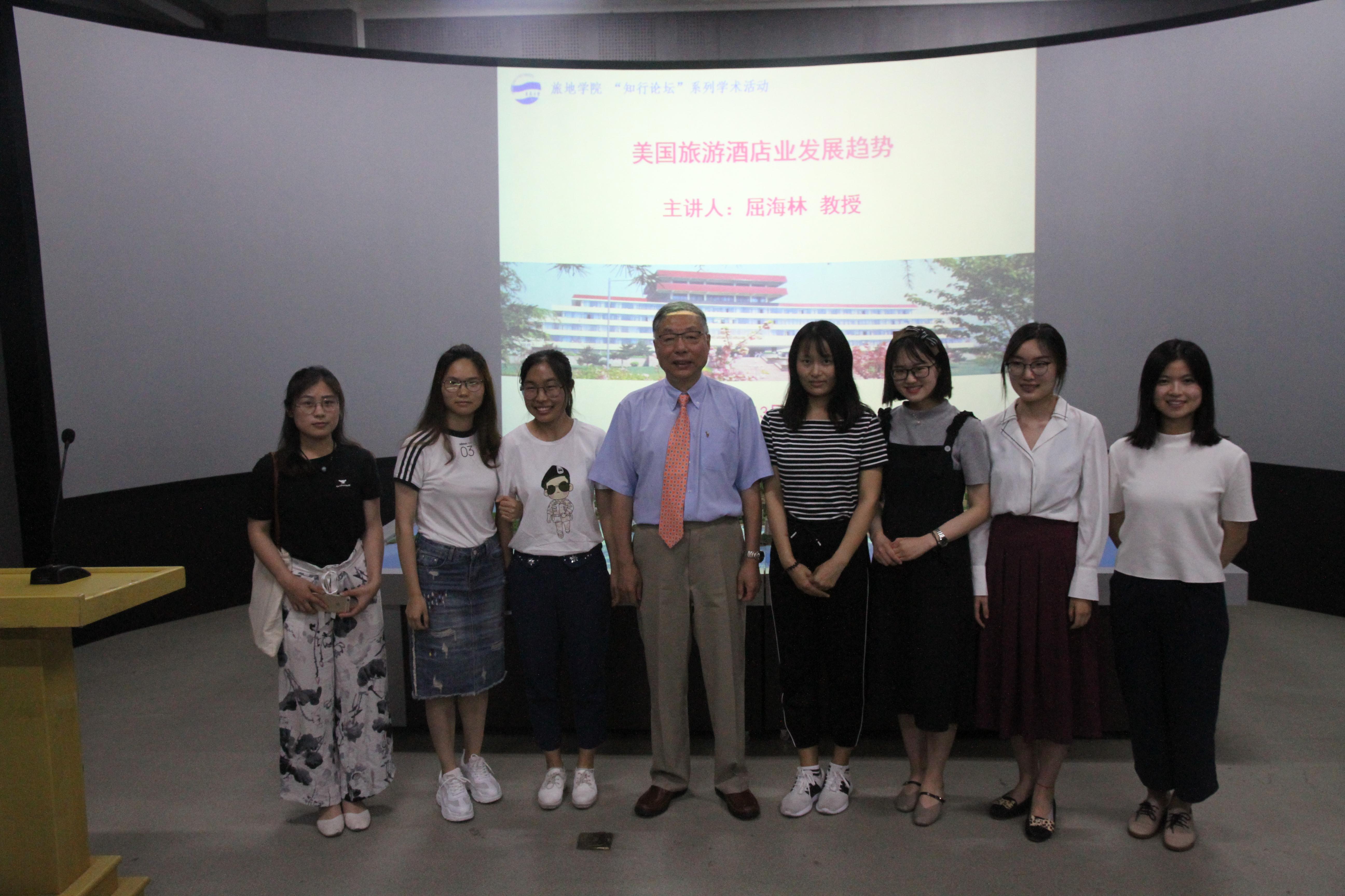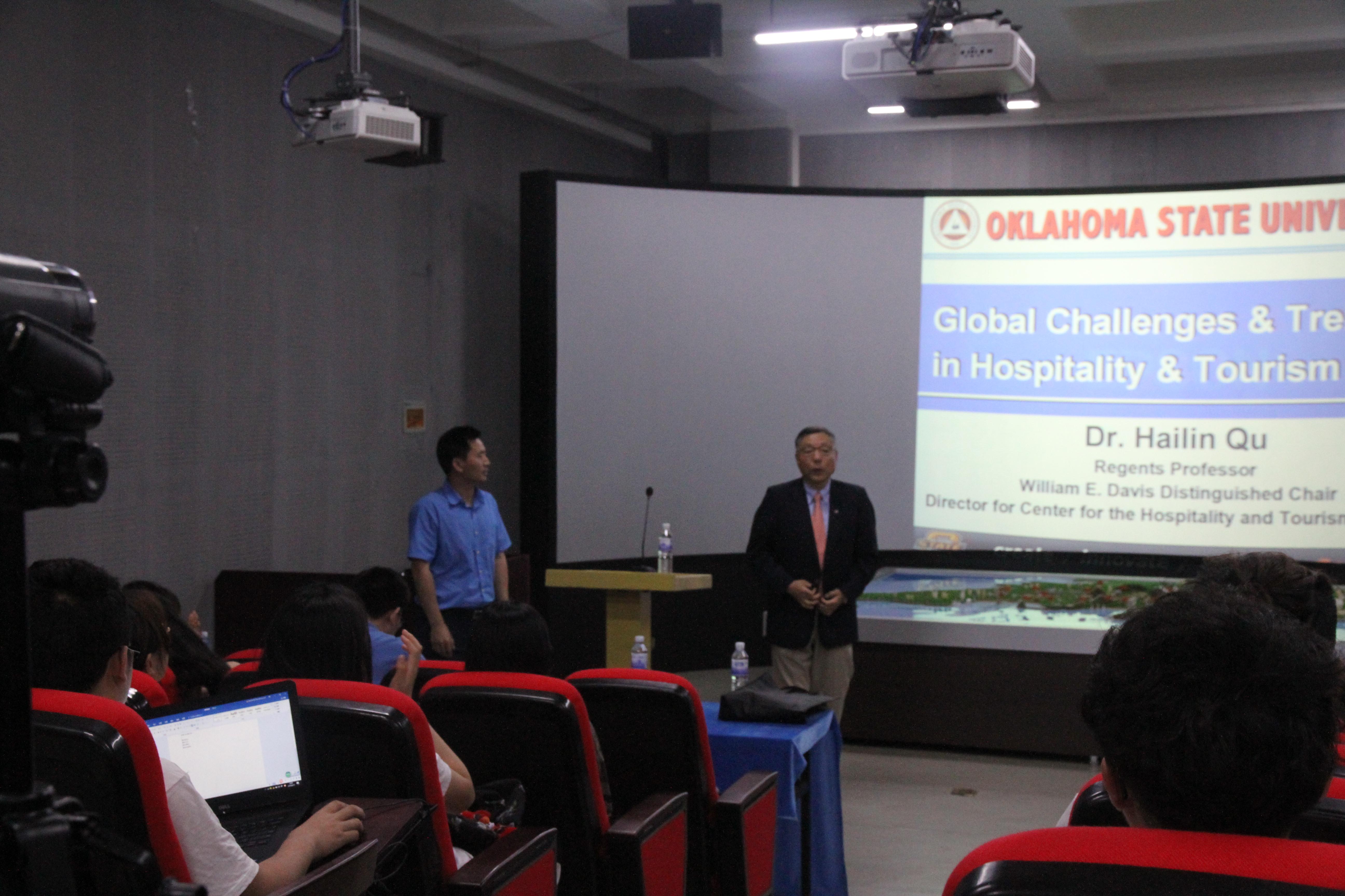 2018年6月13日下午两点,旅游与地理科学学院于万象城awc体育浮山校区静思楼2号旅游数字实验室举办“美国旅游酒店业发展趋势”学术报告会。本次学术报告特邀美国俄克拉荷马州立大学(Oklahoma State University)屈海林教授做学术交流报告,学院教师及学生代表参加了本次活动。