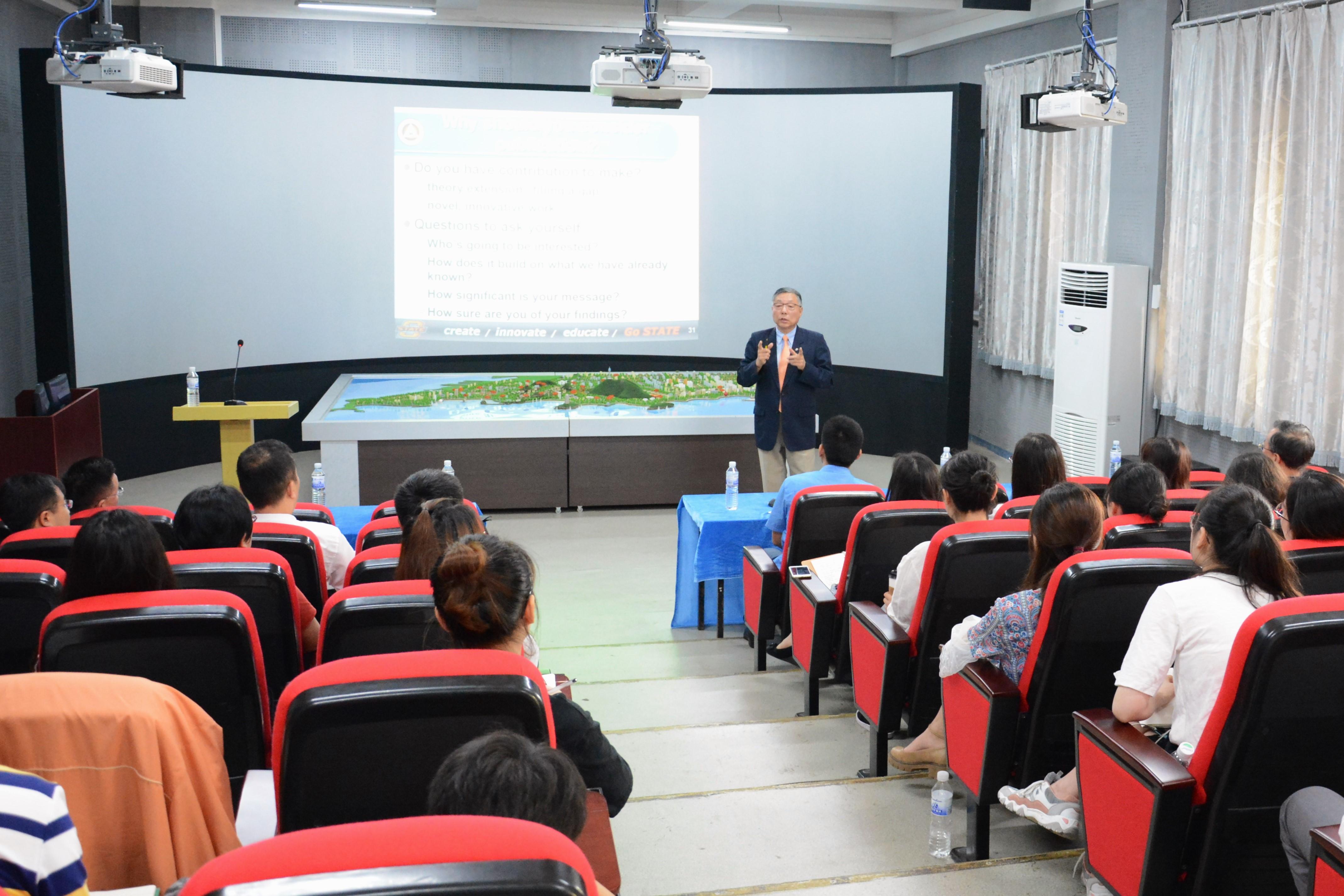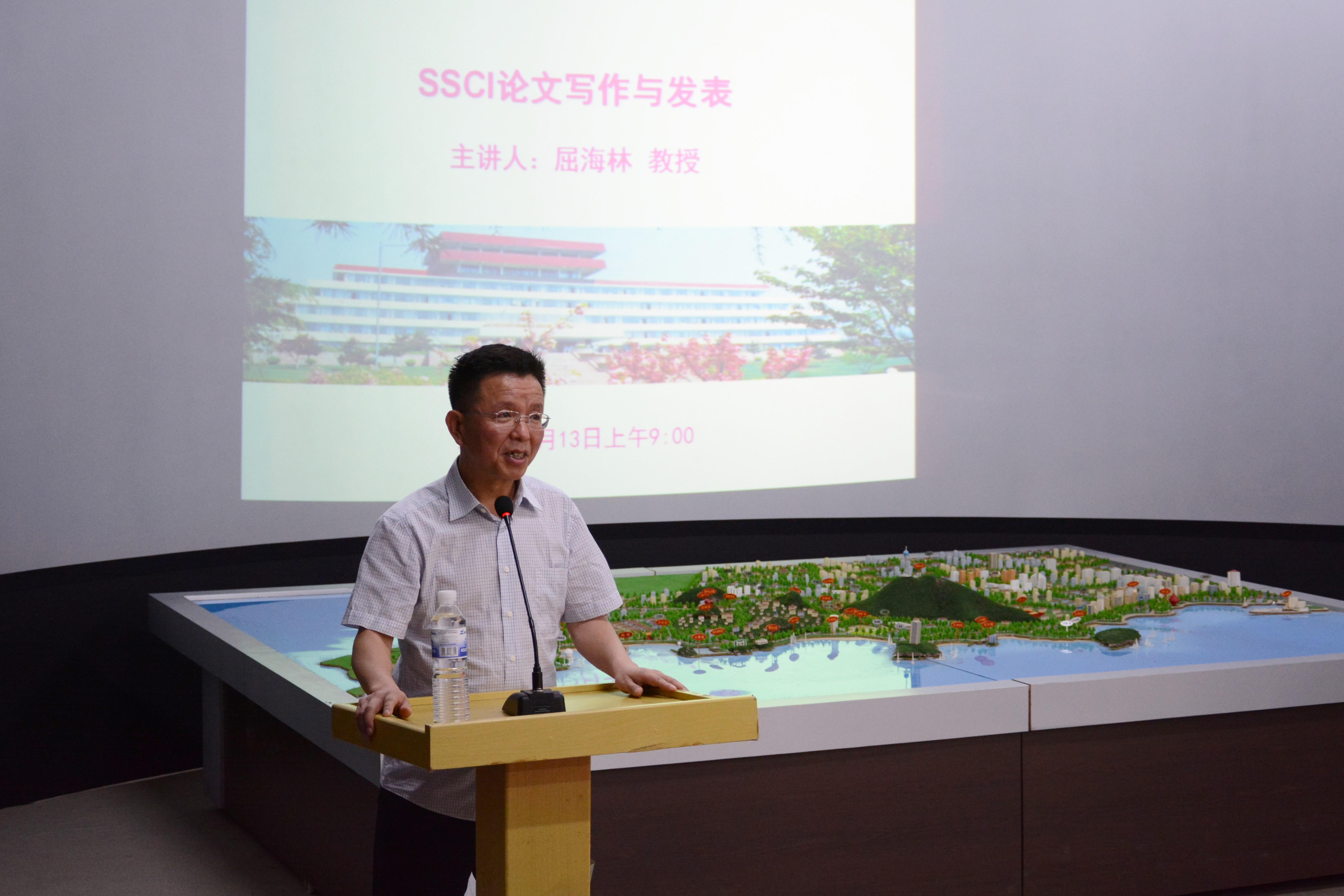 2018年6月13日上午9点,旅游与地理科学学院于万象城awc体育浮山校区静思楼2号旅游数字实验室举办“SSCI论文写作与发表”学术报告。本次学术报告特邀美国俄克拉荷马州立大学(Oklahoma State University)屈海林教授做学术交流报告,我院马波院长主持本次报告会。