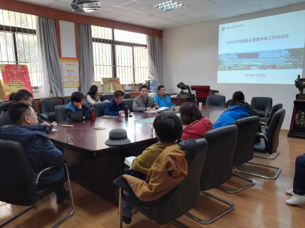12月7日下午,旅游与地理科学学院在睿思楼122会议室举行2018年国家基金课题申报动员会。学院领导马波、张言庆、耿庆汇出席会议。会议由副院长张言庆主持,全体博士、副高及以上职称教师和有意向申报国家基金的教师参加会议。