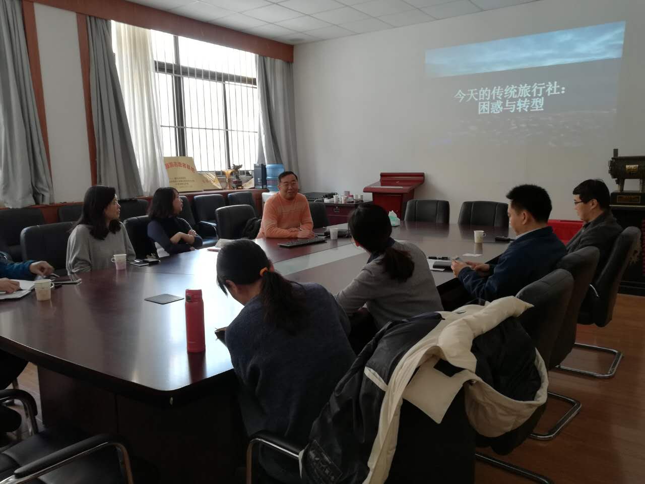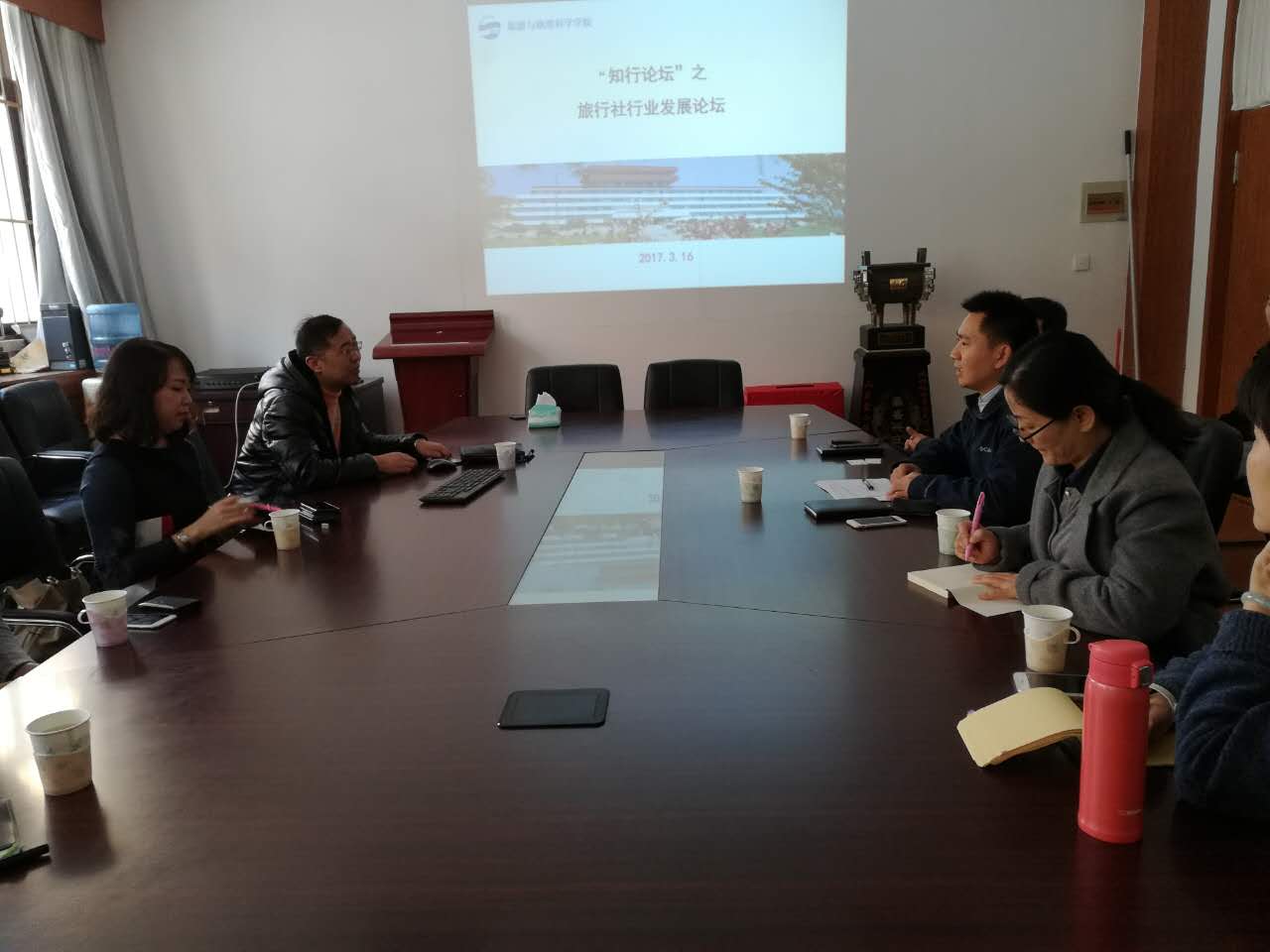 2017年3月16日下午,山东港中旅国际会议展览有限公司执行总经理徐丽丽女士、山东万达国际旅行社有限公司副总经理王晓光和中国国旅(青岛)国际旅行社有限公司入境中心副总经理丁宁女士应邀到旅游与地理科学学院进行学术交流,交流会由旅游与地理科学学院张言庆副院长主持,旅游与地理科学学院师生参加了此次交流会。