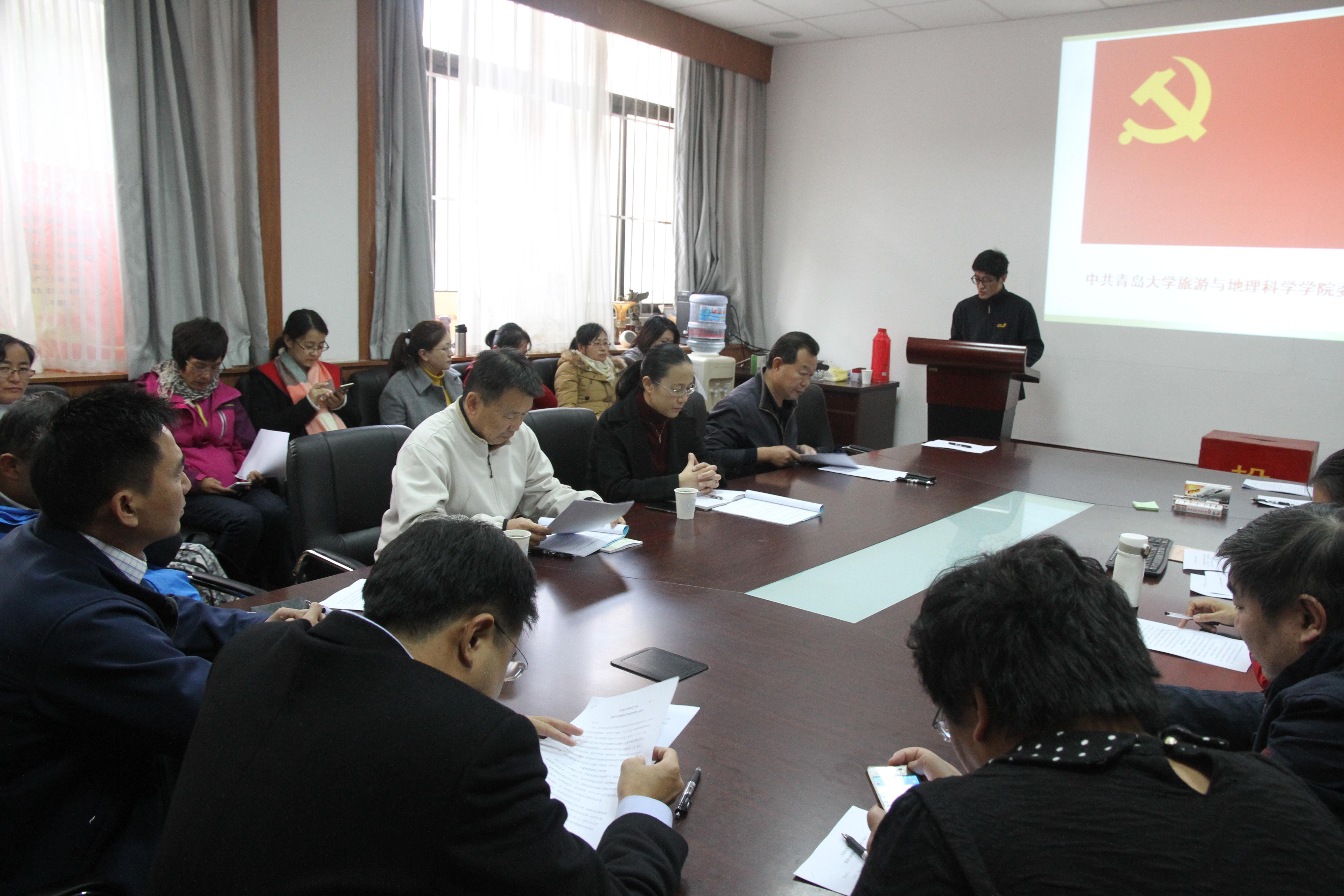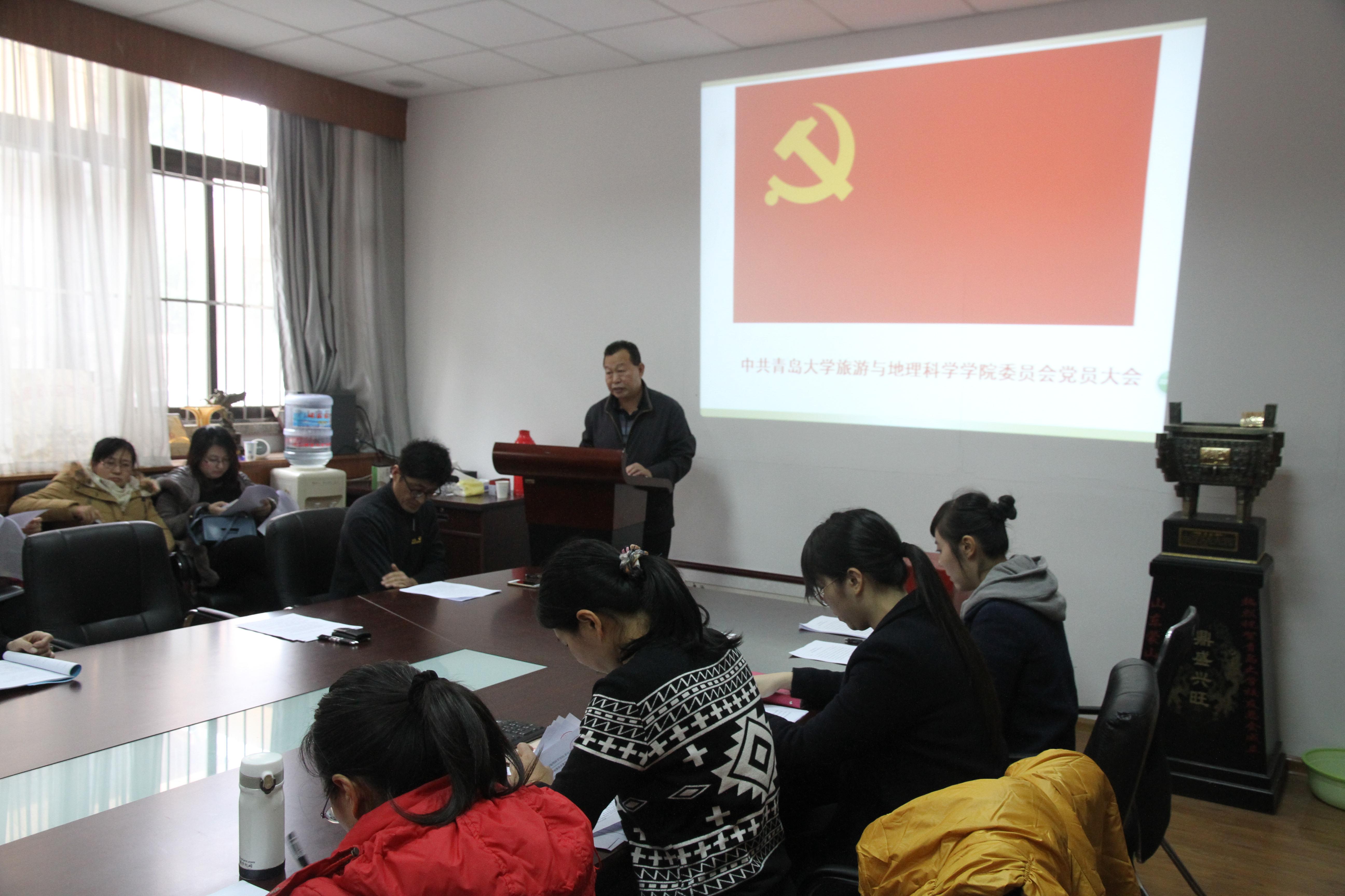 206年11月10日中国共产党万象城awc体育旅游与地理科学学院委员会召开党员大会,刘善东同志受上届委员会的委托,向大会作了工作报告。报告较全面、客观的总结了学院党委在过去几年的工作,科学制定了今后工作的目标和任务。大会表决通过了委员会工作报告。会议要求全院党员以邓小平理论、“三个代表”重要思想、科学发展观为指导,深入学习贯彻习近平总书记系列重要讲话精神和十八大及十八届三中、四中、五中、六中全会精神,紧密团结在以习近平同志为核心的党中央周围,努力提高党组织的吸引力、凝聚力和战斗力。在校院党委的正确领导下,为建设国际知名高水平大学和建设充满活力的旅游与地理科学学院而努力奋斗!