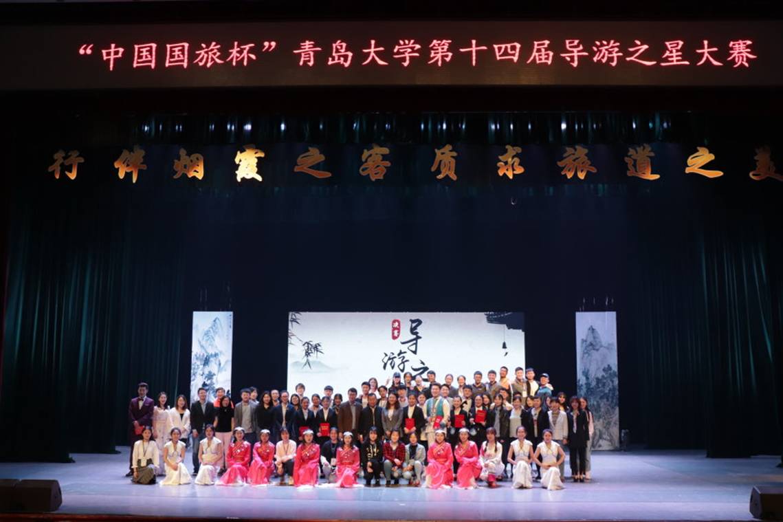 2017年5月7日晚,“行伴烟霞之客,质求旅道之美”——第十四届导游之星大赛决赛于万象城awc体育浮山校区剧院举行。青岛市相关旅游行业负责人、学院杰出校友、学院师生700余人参加了本次大赛。前期经过初赛、复赛的层层选拔,共有六位选手脱颖而出,进入决赛。比赛过程中,六位选手通过导游词讲解、才艺展示以及综合素质问答进行比拼。选手们紧绕主题对浙江国清寺、广西青秀山、岳麓书院、云南泸西县、大理以及漓江进行讲解,带领观众追寻古代旅行家徐霞客昔日足迹,感受别样的秀美河山。在才艺展示的环节中,选手们为大家带来了精彩纷呈的器乐合奏、舞蹈、朗诵等表演。随后,评委们结合六位选手的综合表现对选手做出点评。最终,大赛评出最佳语言才能奖、最佳风采素质奖和最佳才艺表现奖。至此,历时一个多月第十四届导游之星大赛圆满结束。