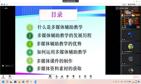 梁洁毓老师的讲座题目是《浅议在初中地理教学中多媒体辅助教学的运用》。许多地理事物学生没有见到,一些地理事物现象复杂。讲地讲理就需要想方设法增加其直观性,千方百计引导学生科学生动的学习地理。如何增强教学直观性呢?梁老师是从多媒体教学含义、发展、选择时机(遇到学生急于)、增加容量和效率、制作和素材的获取进行了系统的介绍,理论与实际结合,通俗易容,便于理解与借鉴。语言简要明晰,节奏明快;多媒体课件设计巧妙,直观形象,对课堂教学有重要辅助作用。