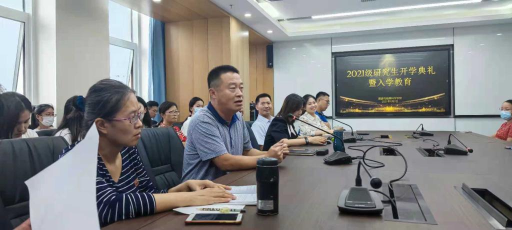 学院党委书记刘善东首先代表学院全体老师对2021级研究生表示热烈欢迎,鼓励新生“拿出考硕的气势”,继续铆足干劲钻研学术研究。随后,他强调,今年是庆祝中国共产党成立100周年,也是向第二个百年奋斗目标进军的开局之年,希望研究生党员发挥模范带头作用,明大德、立大志、成大才、担大任,努力成为堪当民族复兴重任的时代新人。最后,着重强调了安全问题,祝愿21级新生度过健康充实的研究生阶段学习生活。